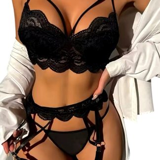 Conjunto portaligas negro de encaje